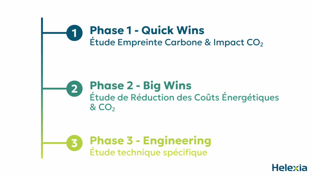 Une transition énergétique réussie commence par une analyse approfondie. Grâce à ses trois phases d’étude – empreinte carbone, réduction des coûts énergétiques et ingénierie technique –, Helexia aide les entreprises à transformer leurs défis énergétiques et carbone en actions concrètes, rentables et durables.