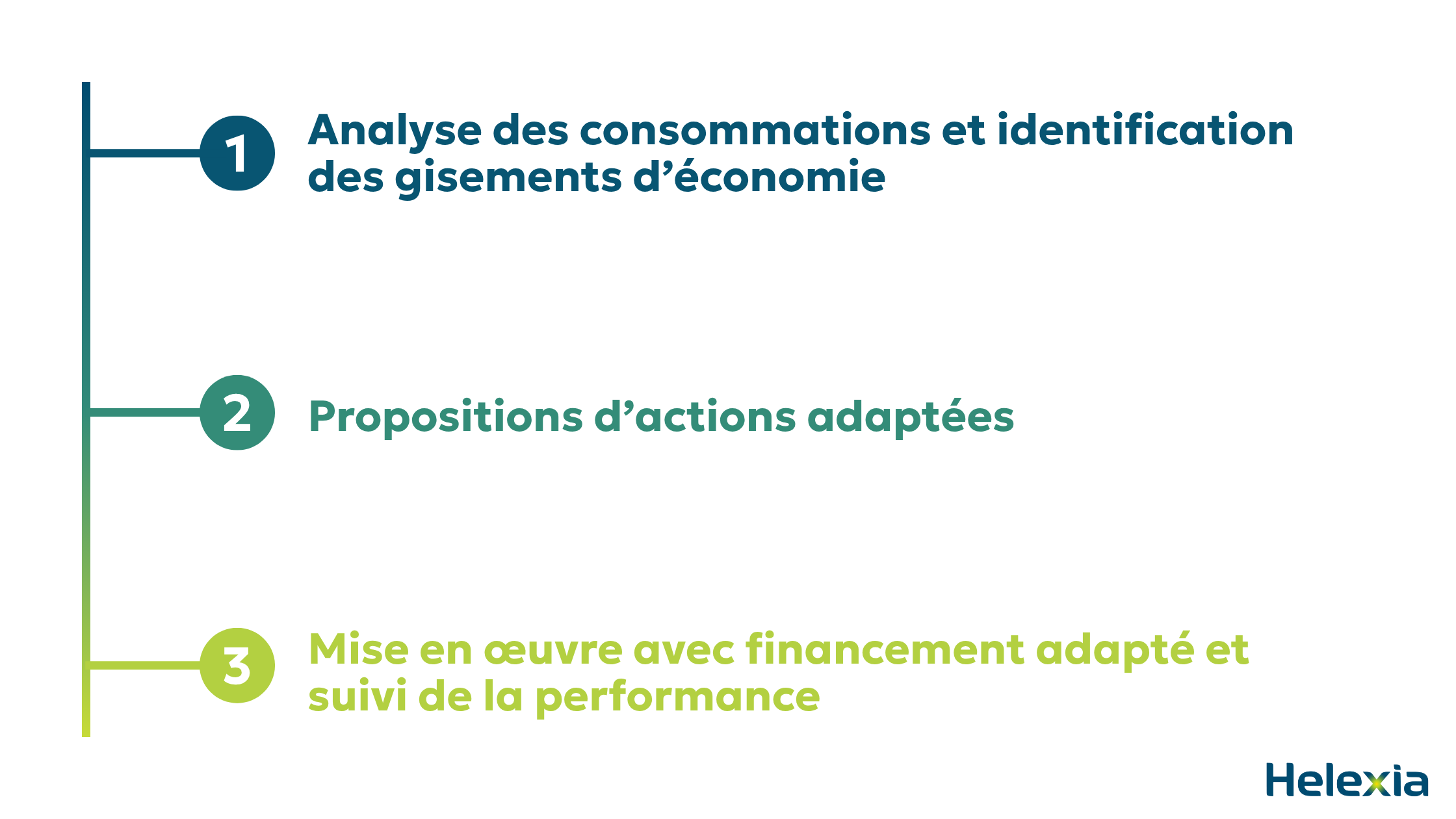 Pour les entreprises, cela signifie qu’elles ne peuvent plus se contenter d’actions ponctuelles. Une stratégie structurée, financée et suivie est essentielle. Avec Helexia, cette stratégie devient un levier de réduction des coûts, de gains compétitifs et de durabilité.