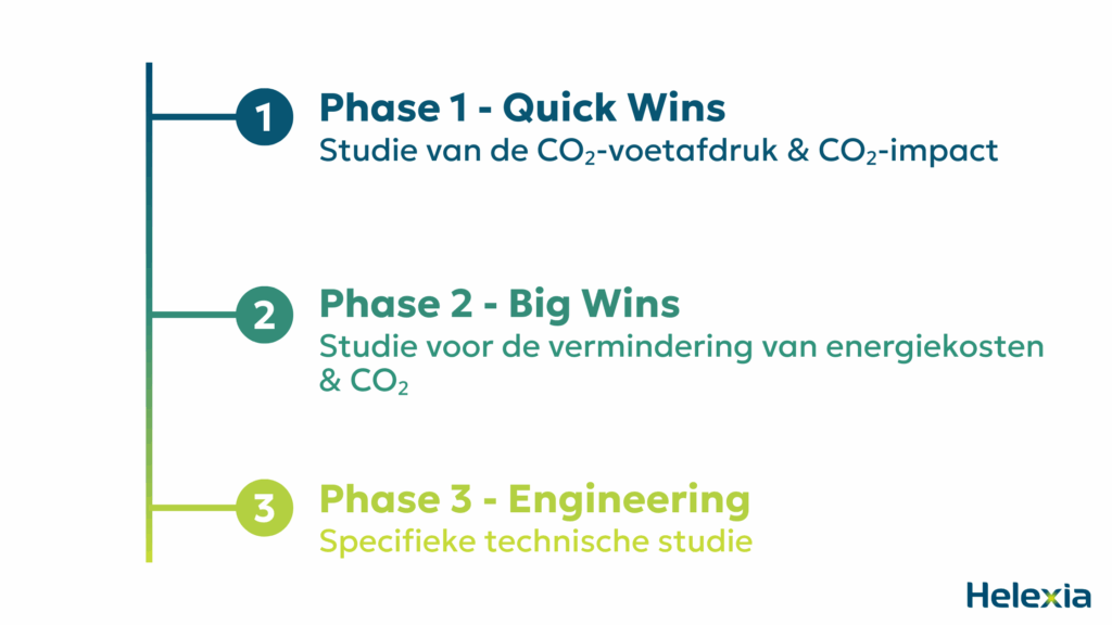 Omdat een voorafgaande analyse het mogelijk maakt om precies uw besparingspotentieel, emissiebronnen en actieprioriteiten te identificeren. Zonder diagnose investeert u blind — met het risico veel te investeren voor een beperkt effect.